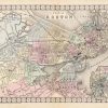 Art Source International is proud to offer this very rare map of the city of Boston. It was produced for S. Augustus Mitchells New Atlas of the United States, published for a single year by Ziegler & McCurdy, in 1874. This single edition is one of the most sought after editions of any American published maps. The maps are distinguished by their decorative “airplane propeller” border. Streets, the Boston Harbor, railroads, geographic features, and various points of interest are shown on this map. Also included is an inset map of the country around Boston showing its harbor and islands. We have found only one map by Ziegler and McCurdy in over 35 years of map sales records and have never, till now, offered any for sale.