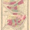 We are excited to offer maps from the 1871 edition of Coltons Atlas of America. In our 25 years these are the first Colton maps from 1871 we have been able to acquire. The Colton firm refused to compromise quality, choosing to compete for sales in the finer quality international market rather than the inexpensive domestic one.Because of this, all maps were engraved by steel plates rather than by wax engraving which was the most common method used at this time. This map of the cities of Pittsburgh, Allegheny and Cincinnati is very detailed with identification of regions, important cities, rivers, lakes, mountain ranges, and railroad lines. Each map has beautiful red, green, tan, pink, and yellow hand coloring used to distinguish regions. ‘