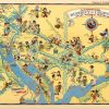 This charming antique pictorial map was published in 1935 by the famous mapmaker & illustrator, Ruth Taylor (White). These illustrated maps came from the atlas, “Our U.S.A – A Gay Geography,” with text by Frank Taylor & the maps done by Ruth Taylor. Ruth Taylors maps have become increasingly rare. Her whimsical maps are bold, colorful, and full of life; showing the local feel, cultural stereotypes, industries and activities of the area. These maps have become very difficult to find and would be a great addition to any map collection.