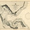 This coastal survey was printed by the U.S. Navy Hydrographic Office in Washington D.C. Details include the names of cities and waterways along the coast. Depth soundings are shown in fathoms. Other details that maybe included are lighthouses and buoy positions.