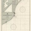 This coastal survey was printed by the U.S. Navy Hydrographic Office in Washington D.C. Details include the names of cities and waterways along the coast. Depth soundings are shown in fathoms. Other details that maybe included are lighthouses and buoy positions.