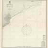 This coastal survey was printed by the U.S. Navy Hydrographic Office in Washington D.C. Details include the names of cities and waterways along the coast. Depth soundings are shown in fathoms. Other details that maybe included are lighthouses and buoy positions.