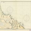 This coastal survey was printed by the U.S. Navy Hydrographic Office in Washington D.C. Details include the names of cities and waterways along the coast. Depth soundings are shown in fathoms. Other details that maybe included are lighthouses and buoy positions.