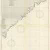 This coastal survey was printed by the U.S. Navy Hydrographic Office in Washington D.C. Details include the names of cities and waterways along the coast. Depth soundings are shown in fathoms. Other details that maybe included are lighthouses and buoy positions.