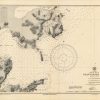 This coastal survey was printed by the U.S. Navy Hydrographic Office in Washington D.C. Details include the names of cities and waterways along the coast. Depth soundings are shown in fathoms. Other details that maybe included are lighthouses and buoy positions.