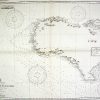 This coastal survey was printed in August 1942 by the U.S. Navy Hydrographic Office in Washington D.C. Details include the names of cities and waterways along the coast. Depth soundings are shown in fathoms. Other details included are lighthouses and buoy positions.