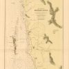 This coastal survey was printed by the U.S. Navy Hydrographic Office in Washington D.C. Details include the names of cities and waterways along the coast. Depth soundings are shown in fathoms. Other details that maybe included are lighthouses and buoy positions.