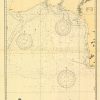 This coastal survey was printed by the U.S. Navy Hydrographic Office in Washington D.C. Details include the names of cities and waterways along the coast. Depth soundings are shown in fathoms. Other details that maybe included are lighthouses and buoy positions.