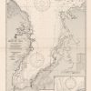 This coastal survey was printed by the U.S. Navy Hydrographic Office in Washington D.C. Details include the names of cities and waterways along the coast. Depth soundings are shown in fathoms. Other details that maybe included are lighthouses and buoy positions.