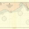 This coastal survey was printed by the U.S. Navy Hydrographic Office in Washington D.C. Details include the names of cities and waterways along the coast. Depth soundings are shown in fathoms. Other details that maybe included are lighthouses and buoy positions.