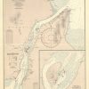 This coastal survey was printed by the U.S. Navy Hydrographic Office in Washington D.C. Details include the names of cities and waterways along the coast. Depth soundings are shown in fathoms. Other details that maybe included are lighthouses and buoy positions.