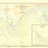 This coastal survey was printed by the U.S. Navy Hydrographic Office in Washington D.C. Details include the names of cities and waterways along the coast. Depth soundings are shown in fathoms. Other details that maybe included are lighthouses and buoy positions.