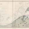This coastal survey was printed by the U.S. Navy Hydrographic Office in Washington D.C. Details include the names of cities and waterways along the coast. Depth soundings are shown in fathoms. Other details that maybe included are lighthouses and buoy positions.