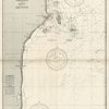 This coastal survey was printed by the U.S. Navy Hydrographic Office in Washington D.C. Details include the names of cities and waterways along the coast. Depth soundings are shown in fathoms. Other details that maybe included are lighthouses and buoy positions.