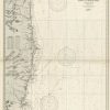 This coastal survey was printed by the U.S. Navy Hydrographic Office in Washington D.C. Details include the names of cities and waterways along the coast. Depth soundings are shown in fathoms. Other details that maybe included are lighthouses and buoy positions.