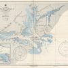 This coastal survey was printed by the U.S. Navy Hydrographic Office in Washington D.C. Details include the names of cities and waterways along the coast. Depth soundings are shown in fathoms. Other details that maybe included are lighthouses and buoy positions.
