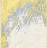 This coastal survey, produced in 1957, shows Casco Bay, Maine. It was made by the United States Coast and Geodetic Survey. These surveys provide notes on important characteristics, including depth readings, and names of harbors, rivers, and coastal towns. The charts illustrate areas that have likely undergone significant changes due to modifications and recessions of coastal lands, making them fascinating to anyone interested in local geography and history.