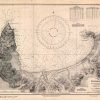 This coastal survey was printed by the U.S. Navy Hydrographic Office in Washington D.C. Details include the names of cities and waterways along the coast. Depth soundings are shown in fathoms. Other details that maybe included are lighthouses and buoy positions.
