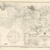 This coastal survey was printed by the U.S. Navy Hydrographic Office in Washington D.C. Details include the names of cities and waterways along the coast. Depth soundings are shown in fathoms. Other details that maybe included are lighthouses and buoy positions.