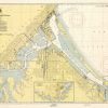 This coastal survey was printed by the U.S. Navy Hydrographic Office in Washington D.C. Details include the names of cities and waterways along the coast. Depth soundings are shown in fathoms. Other details that maybe included are lighthouses and buoy positions.