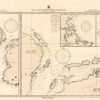 This coastal survey was printed by the U.S. Navy Hydrographic Office in Washington D.C. Details include the names of cities and waterways along the coast. Depth soundings are shown in fathoms. Other details that maybe included are lighthouses and buoy positions.