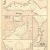 This coastal survey was printed by the U.S. Navy Hydrographic Office in Washington D.C. Details include the names of cities and waterways along the coast. Depth soundings are shown in fathoms. Other details that maybe included are lighthouses and buoy positions.