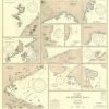 This coastal survey was printed by the U.S. Navy Hydrographic Office in Washington D.C. Details include the names of cities and waterways along the coast. Depth soundings are shown in fathoms. Other details that maybe included are lighthouses and buoy positions.