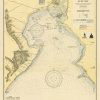 This coastal survey was printed by the U.S. Navy Hydrographic Office in Washington D.C. Details include the names of cities and waterways along the coast. Depth soundings are shown in fathoms. Other details that maybe included are lighthouses and buoy positions.
