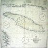 This coastal survey was printed in May 1945 by the U.S. Navy Hydrographic Office in Washington D.C. Details include the names of cities and waterways along the coast. Depth soundings are shown in fathoms. Other details included are lighthouses and buoy positions.