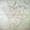 This coastal survey was printed in May 1942 by the U.S. Navy Hydrographic Office in Washington D.C. Details include the names of cities and waterways along the coast. Depth soundings are shown in fathoms. Other details included are lighthouses and buoy positions.