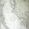 This coastal survey was printed in January 1945 by the U.S. Navy Hydrographic Office in Washington D.C. Details include the names of cities and waterways along the coast. Depth soundings are shown in fathoms. Other details included are lighthouses and buoy positions.