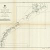 This black and white, antique coastal survey was made for the United States Coast Survey. The surveys provide depth readings and notes on important coastal characteristics of the area mapped. The names of harbors, rivers, islands, light houses, channels, shoals, capes, inlets, and coastal towns are identified on the map. These charts show areas that have likely undergone significant changes due to modifications and recessions of coastal lands, making them fascinating to anyone interested in local geography and history. Note: Age toning around the folds in these maps is quite common. Map is sold folded as issued.