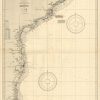 This coastal survey was printed by the U.S. Navy Hydrographic Office in Washington D.C. Details include the names of cities and waterways along the coast. Depth soundings are shown in fathoms. Other details that maybe included are lighthouses and buoy positions.