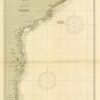 This coastal survey was printed by the U.S. Navy Hydrographic Office in Washington D.C. Details include the names of cities and waterways along the coast. Depth soundings are shown in fathoms. Other details that maybe included are lighthouses and buoy positions.