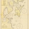 This coastal survey was printed by the U.S. Navy Hydrographic Office in Washington D.C. Details include the names of cities and waterways along the coast. Depth soundings are shown in fathoms. Other details that maybe included are lighthouses and buoy positions.