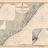 This coastal survey was printed by the U.S. Navy Hydrographic Office in Washington D.C. Details include the names of cities and waterways along the coast. Depth soundings are shown in fathoms. Other details that maybe included are lighthouses and buoy positions.