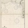 This coastal survey was printed by the U.S. Navy Hydrographic Office in Washington D.C. Details include the names of cities and waterways along the coast. Depth soundings are shown in fathoms. Other details that maybe included are lighthouses and buoy positions.