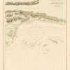 This coastal survey was printed by the U.S. Navy Hydrographic Office in Washington D.C. Details include the names of cities and waterways along the coast. Depth soundings are shown in fathoms. Other details that maybe included are lighthouses and buoy positions.