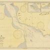 This coastal survey was printed by the U.S. Navy Hydrographic Office in Washington D.C. Details include the names of cities and waterways along the coast. Depth soundings are shown in fathoms. Other details that maybe included are lighthouses and buoy positions.