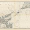This coastal survey was printed by the U.S. Navy Hydrographic Office in Washington D.C. Details include the names of cities and waterways along the coast. Depth soundings are shown in fathoms. Other details that maybe included are lighthouses and buoy positions.