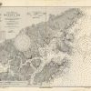 This coastal survey was printed by the U.S. Navy Hydrographic Office in Washington D.C. Details include the names of cities and waterways along the coast. Depth soundings are shown in fathoms. Other details that maybe included are lighthouses and buoy positions.