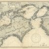 This coastal survey was printed by the U.S. Navy Hydrographic Office in Washington D.C. Details include the names of cities and waterways along the coast. Depth soundings are shown in fathoms. Other details that maybe included are lighthouses and buoy positions.