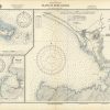 This coastal survey was printed by the U.S. Navy Hydrographic Office in Washington D.C. Details include the names of cities and waterways along the coast. Depth soundings are shown in fathoms. Other details that maybe included are lighthouses and buoy positions.