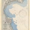 This coastal survey was printed by the U.S. Navy Hydrographic Office in Washington D.C. Details include the names of cities and waterways along the coast. Depth soundings are shown in fathoms. Other details that maybe included are lighthouses and buoy positions.