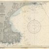 This coastal survey was printed by the U.S. Navy Hydrographic Office in Washington D.C. Details include the names of cities and waterways along the coast. Depth soundings are shown in fathoms. Other details that maybe included are lighthouses and buoy positions.