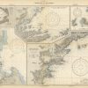 This coastal survey was printed by the U.S. Navy Hydrographic Office in Washington D.C. Details include the names of cities and waterways along the coast. Depth soundings are shown in fathoms. Other details that maybe included are lighthouses and buoy positions.