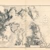 This coastal survey was printed by the U.S. Navy Hydrographic Office in Washington D.C. Details include the names of cities and waterways along the coast. Depth soundings are shown in fathoms. Other details that maybe included are lighthouses and buoy positions.