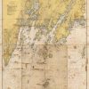 This coastal survey, produced in 1950, shows Muscongus Bay. It was made by the United States Coast and Geodetic Survey. These surveys provide notes on important characteristics, including depth readings, and names of harbors, rivers, and coastal towns. The charts illustrate areas that have likely undergone significant changes due to modifications and recessions of coastal lands, making them fascinating to anyone interested in local geography and history.