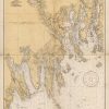 This coastal survey, produced in 1935, shows Nash Island to Schoodic Island. It was made by the United States Coast and Geodetic Survey. These surveys provide notes on important characteristics, including depth readings, and names of harbors, rivers, and coastal towns. The charts illustrate areas that have likely undergone significant changes due to modifications and recessions of coastal lands, making them fascinating to anyone interested in local geography and history.