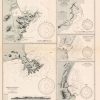 This coastal survey was printed by the U.S. Navy Hydrographic Office in Washington D.C. Details include the names of cities and waterways along the coast. Depth soundings are shown in fathoms. Other details that maybe included are lighthouses and buoy positions.